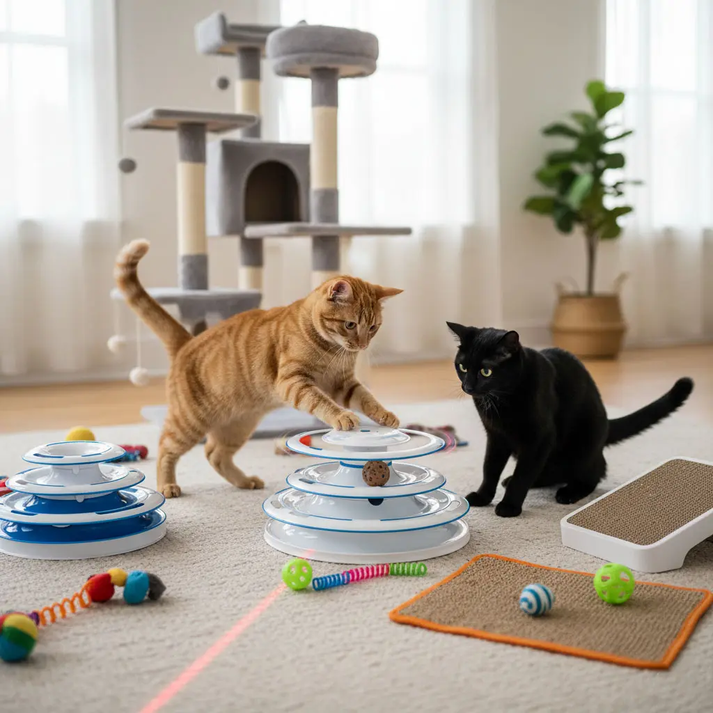 5️⃣ 玩具娱乐:逗猫棒、磨牙玩具、互动隧道。